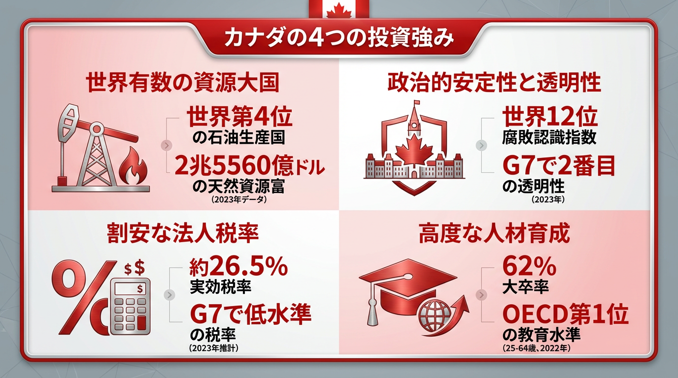 投資先としてのカナダには、以下のような魅力があります。
