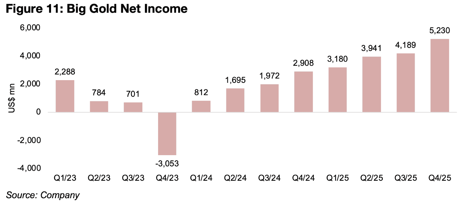 しかし、この生産量の減少は、実現金価格の急騰によってはるかに相殺された。2025年第4四半期の実現金価格は4,216米ドルとなり、2024年第4四半期の2,643米ドルから前年同期比59.5%上昇した(図6)。
