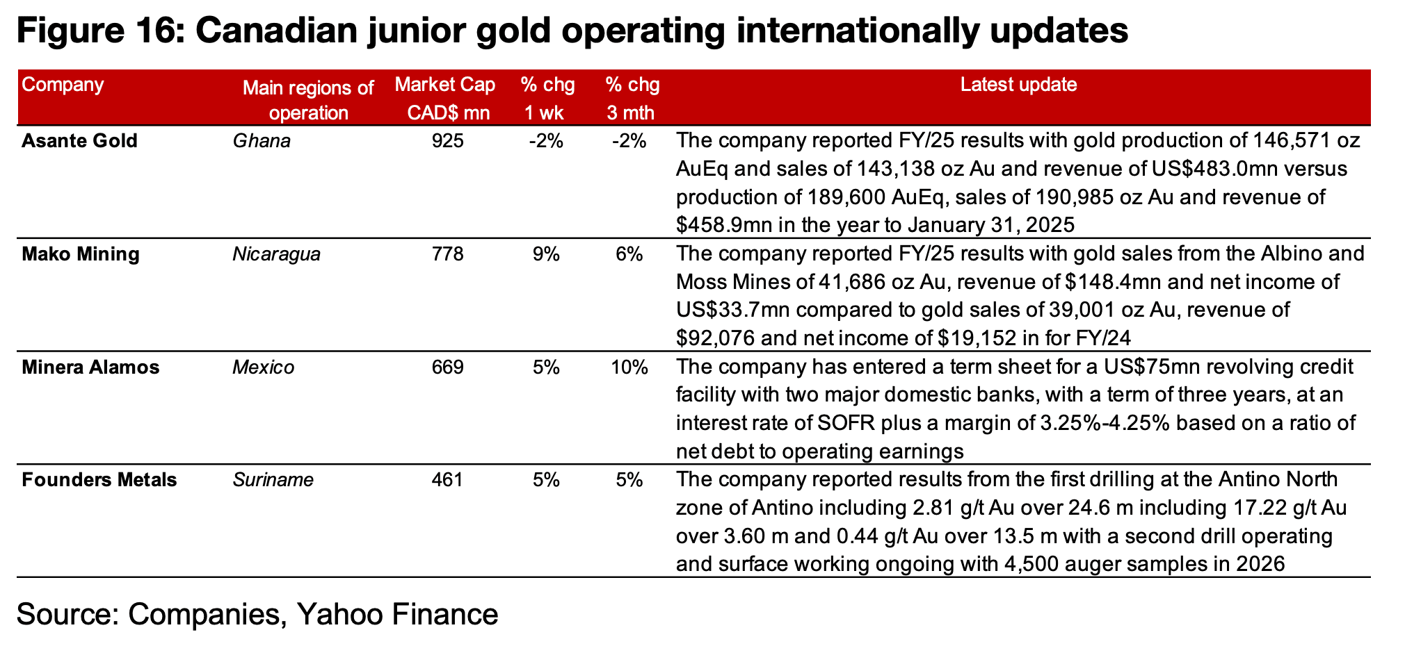 図16:カナダの海外展開ジュニア金鉱会社の最新動向