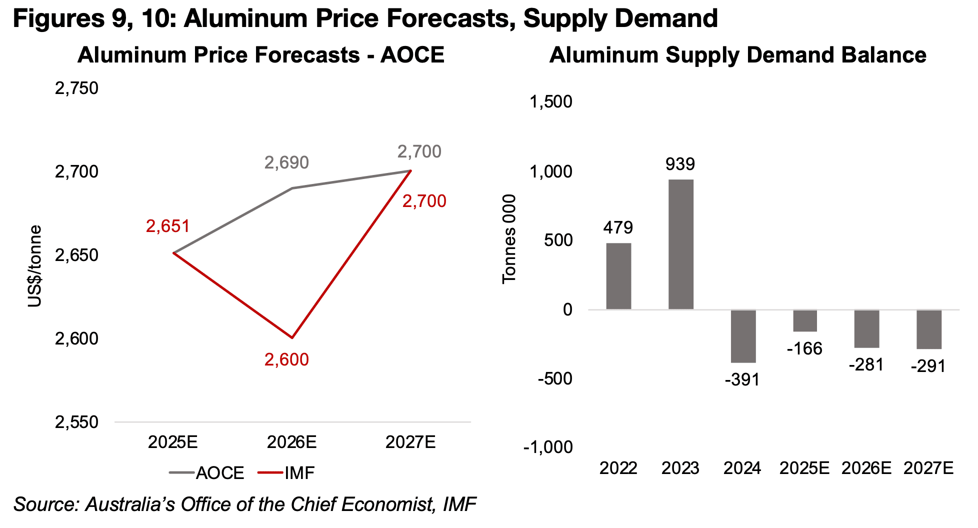 図9、10:アルミニウム価格の予測、需給動向