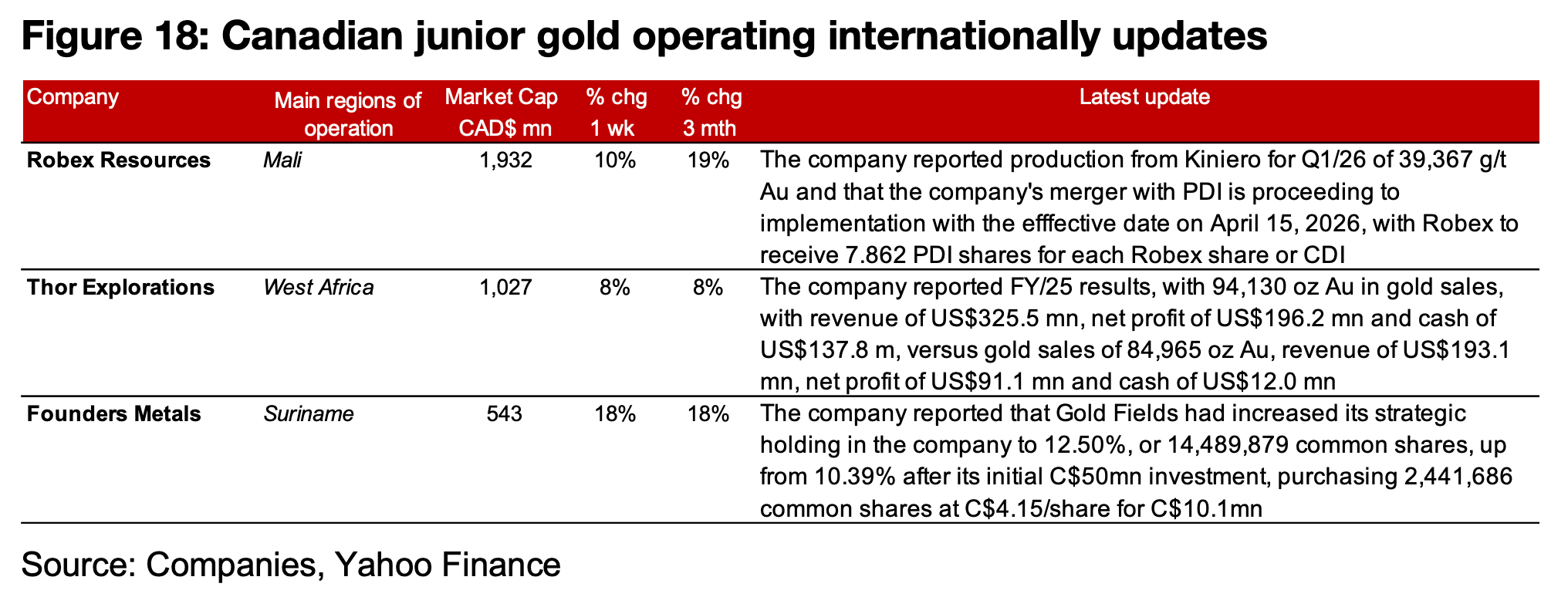 図18:カナダの海外展開ジュニア金鉱会社の最新動向