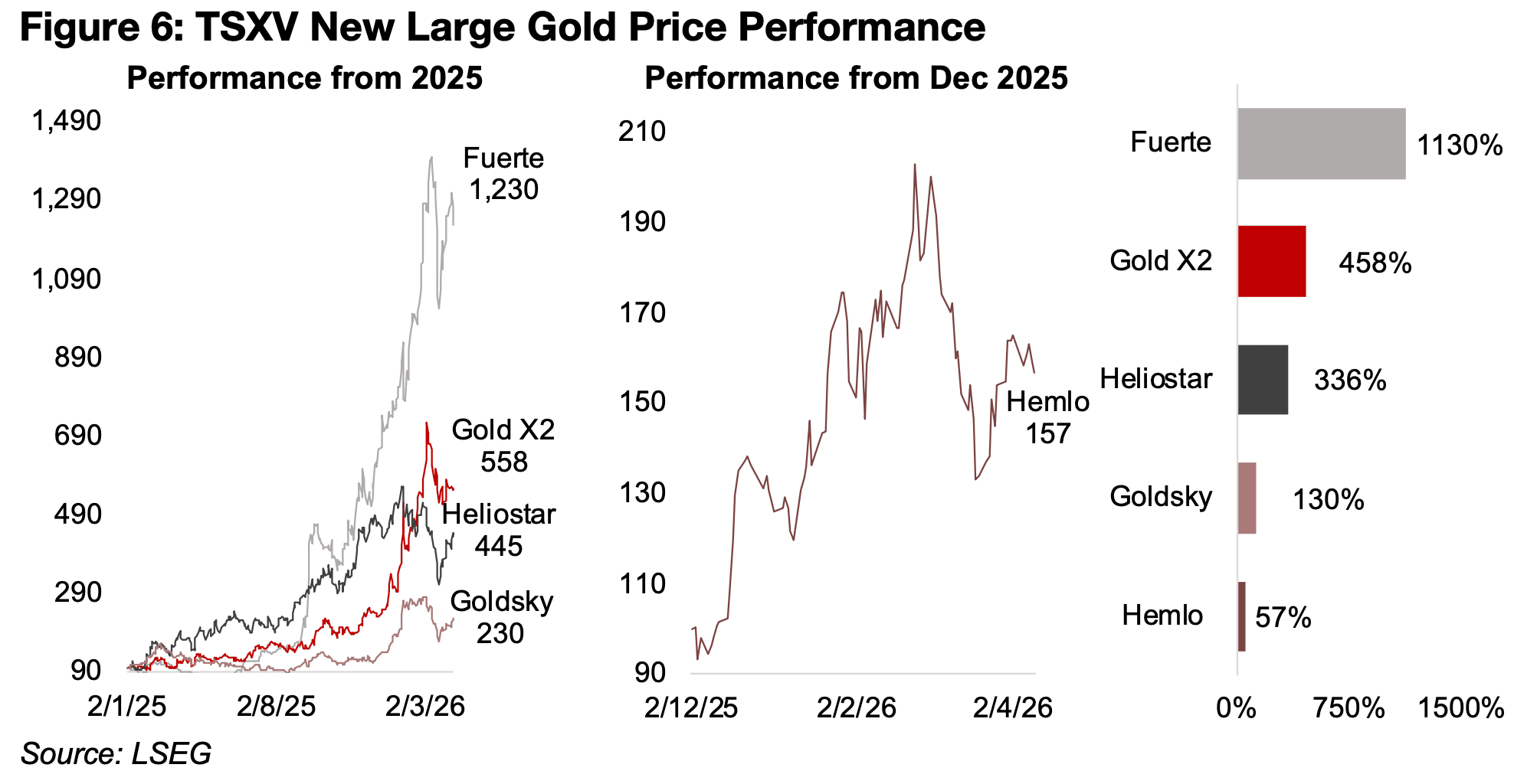 フエルテは特に株価パフォーマンスが際立っており、過去1年間で10倍以上の上昇を記録した。一方、ヘムロは2025年末の上場以降、すでに50%以上の上昇を見せている(図6)。