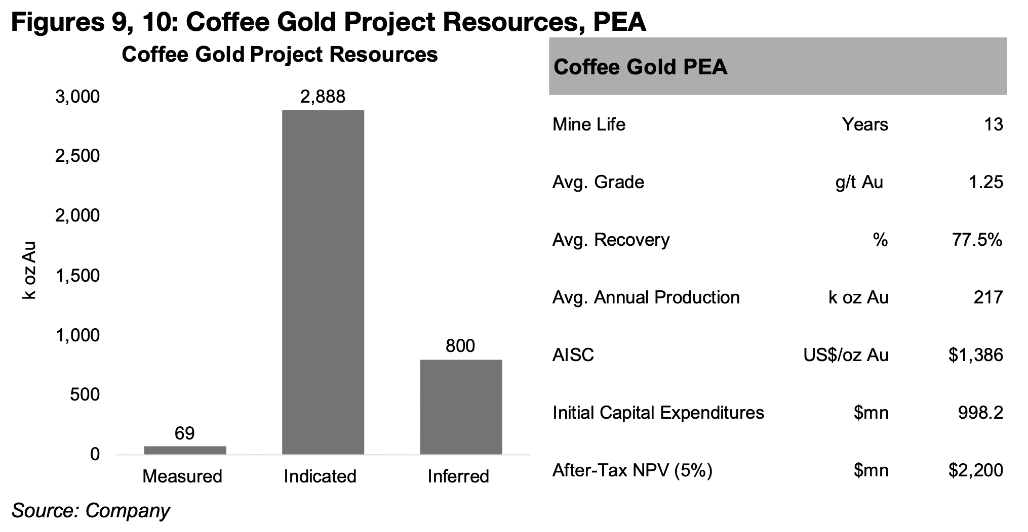 図9、10:コーヒー金プロジェクトの資源と予備的経済評価(PEA)